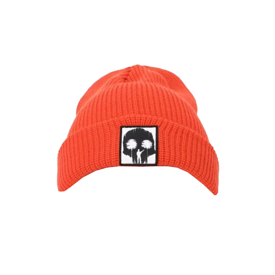 Arb Fictions Hi Vis cotton beanie with skull embroidered patch.