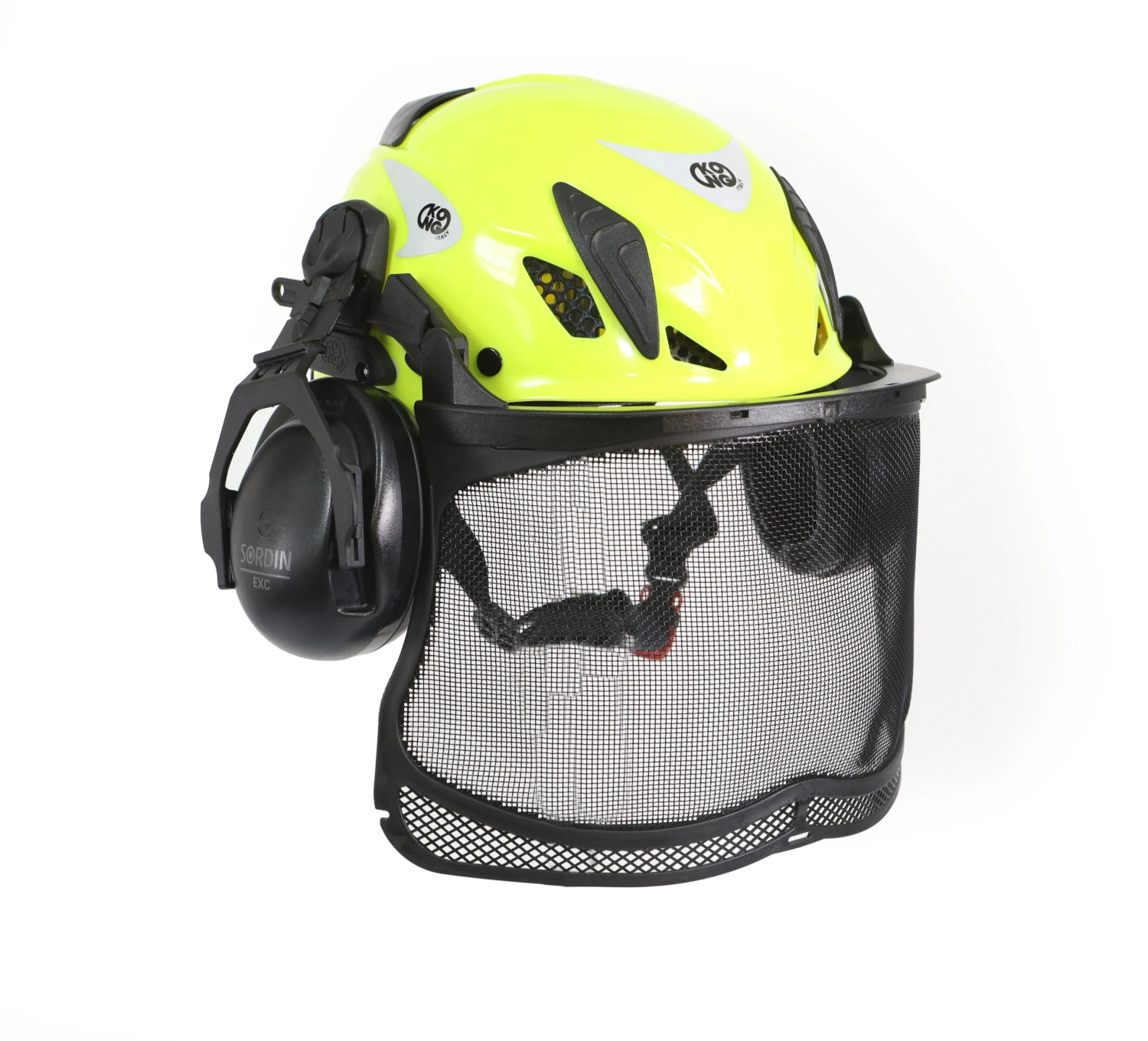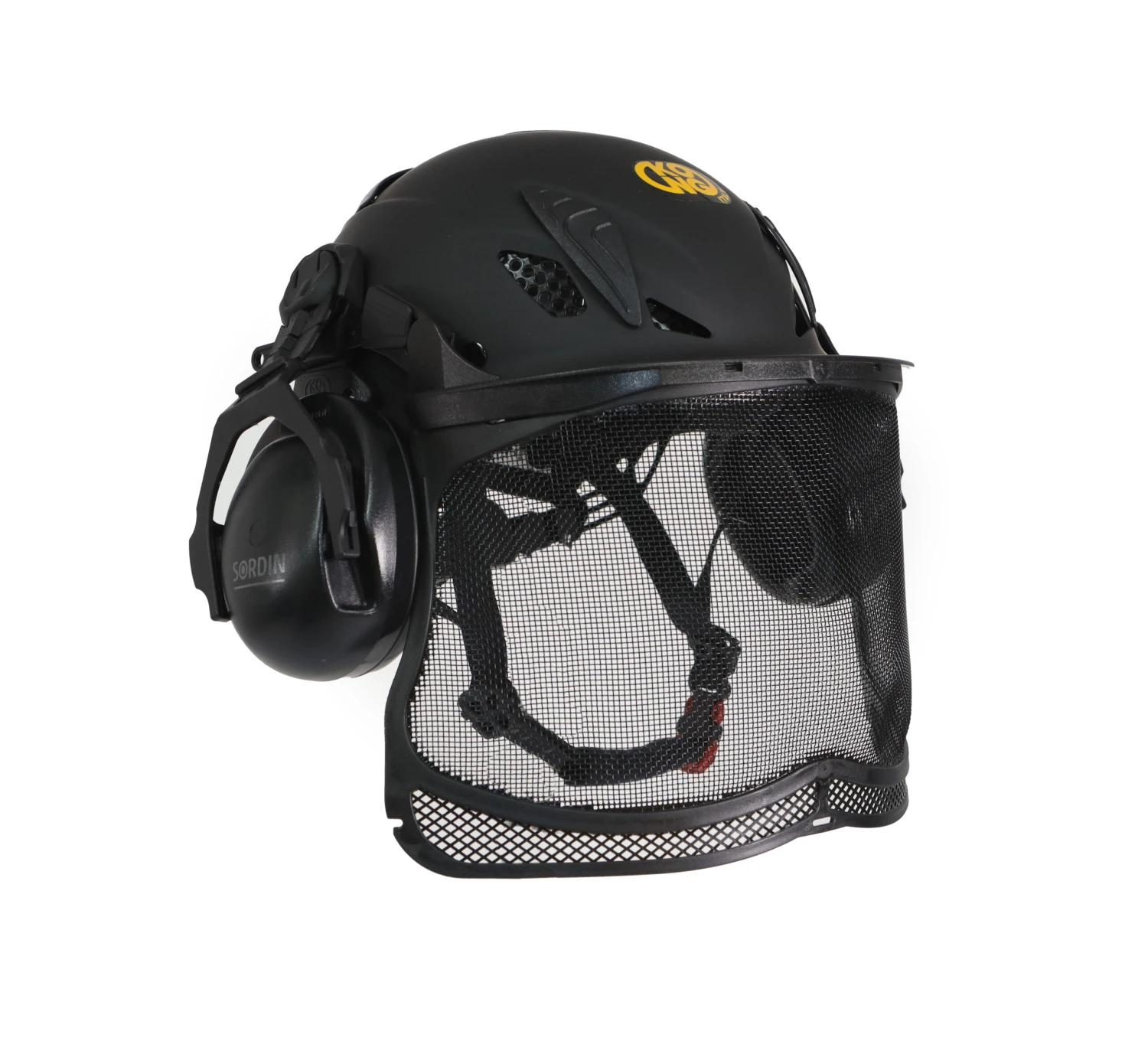 Light, comfortable and well-ventilated helmet. Ultra-durable ABS shell, polyester strap with snap, quick size adjustment by wheel regulation system. Equipped with pre-marked holes for attaching ear defenders and visor.