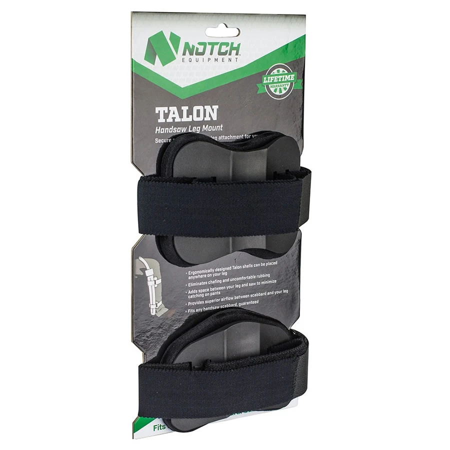 The Talon provides a secure and comfortable leg attachment for any handsaw scabbard. One size fits all. A tough rubber strap secures the scabbard to the shell, while an elastic Velcro strap holds it firmly to your leg.