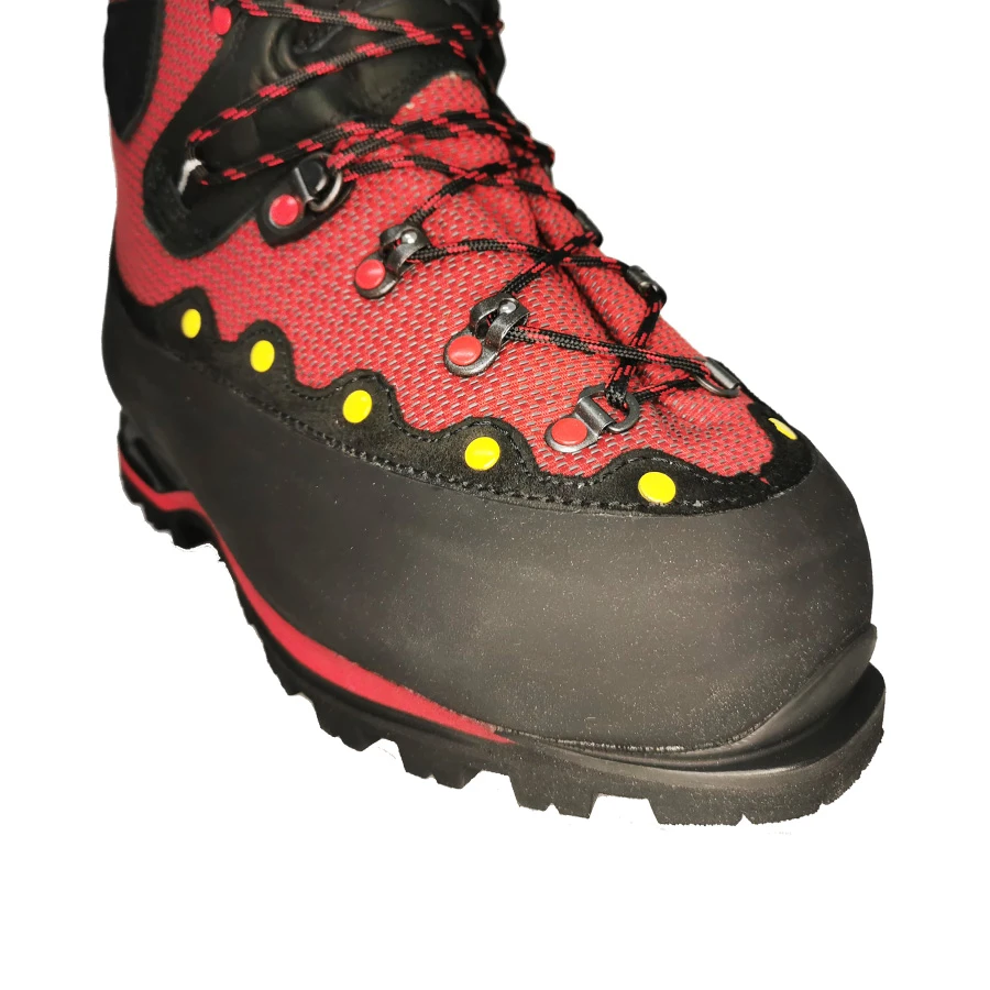 The S ntis boot stands out with its patented rivets, which stably connect the upper material, the chainsaw protection material and the rand protection.