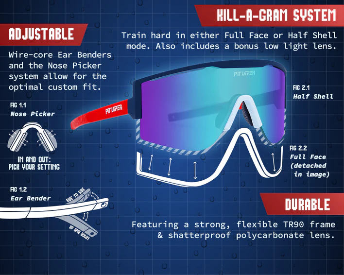 - – Kill-A-Gram™ full face and half shell convertible frame system