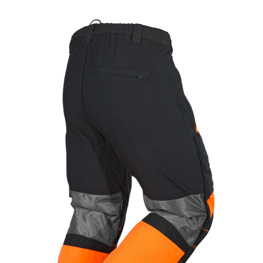 - 1 patched thigh pocket with flap with retro-reflective piping