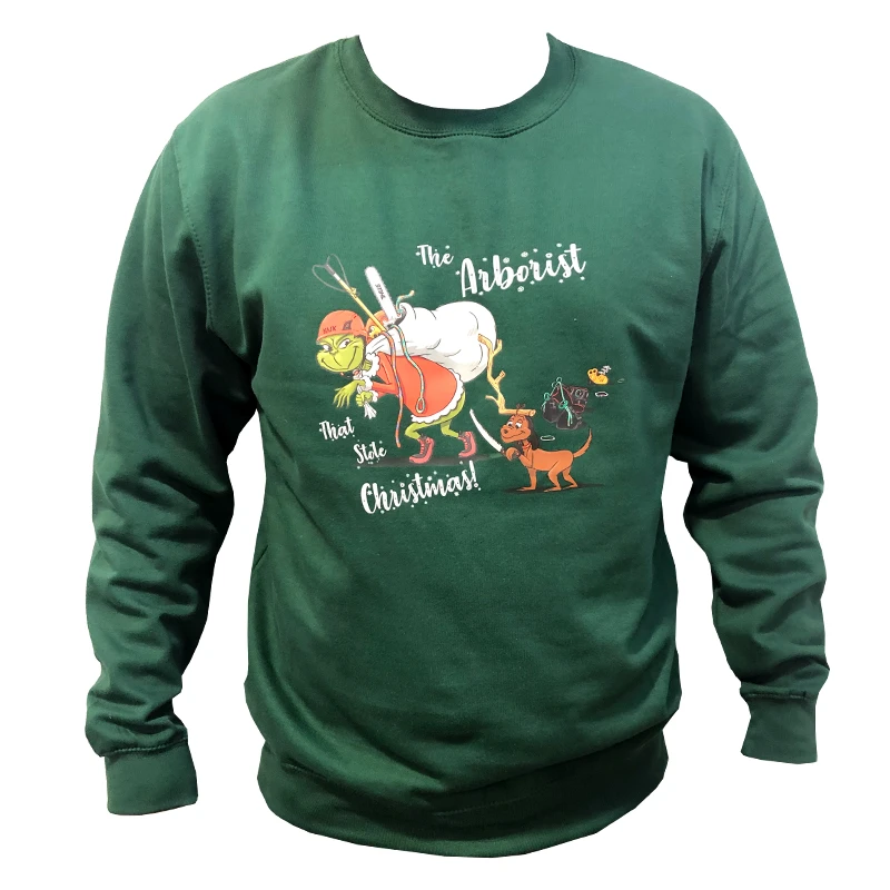 This classic green sweatshirt with crew neckline printed to the front with ‘The Arborist that stole Christmas’ will be sure to get you in the christmas spirit.
